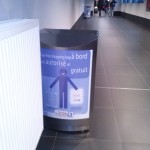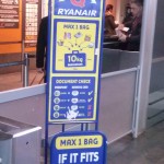 - En esta otro anuncio, colocado a menos de diez metros del anterior, se dice lo contrario: «No admitimos más que una bolsa de mano a bordo y eso excluye expresamente las de las tiendas de tax free».